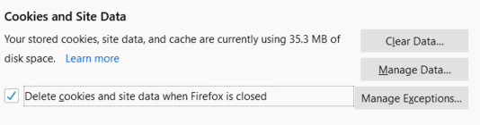 To clear cookies and site data in Firefox: