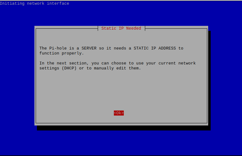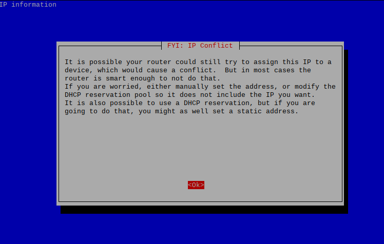 - Next up is a warning about the necessity of a static IP address. This shouldn't be an issue for most users: