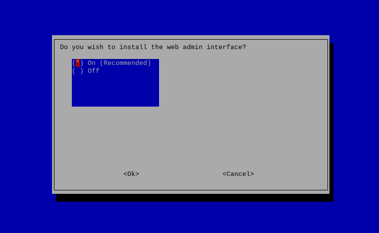 - This screen asks if you want to install the web admin interface: