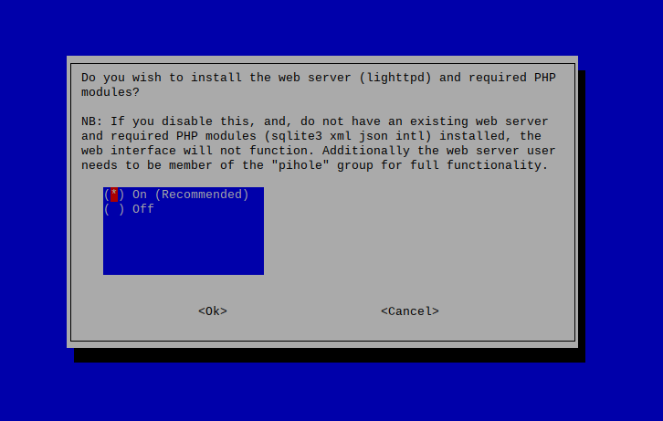 With that, your device should be busy installing PiHole for a little bit.