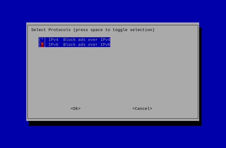 - On the next screen, we can choose to block ads over IPv4 or IPv6. Both are selected as a default. I highly suggest to leave it this way: