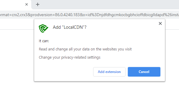 Let's run through an example. This time, I will be installing the LocalCDN extension.