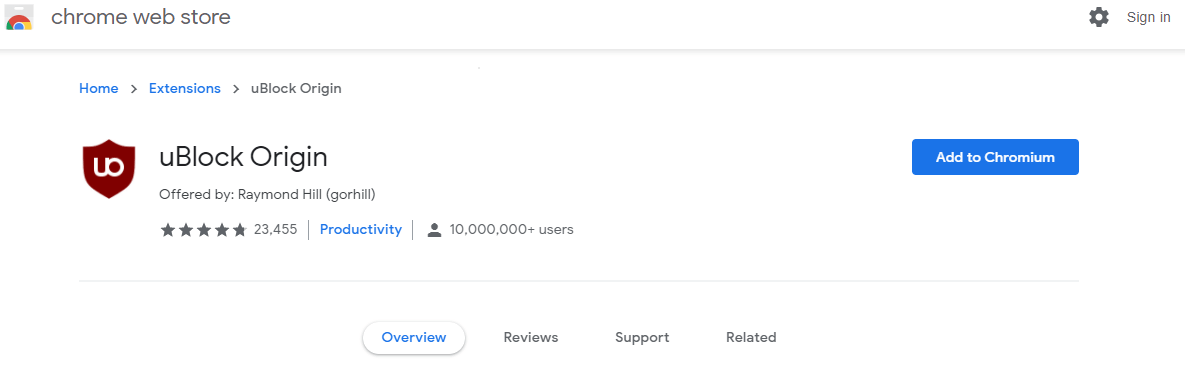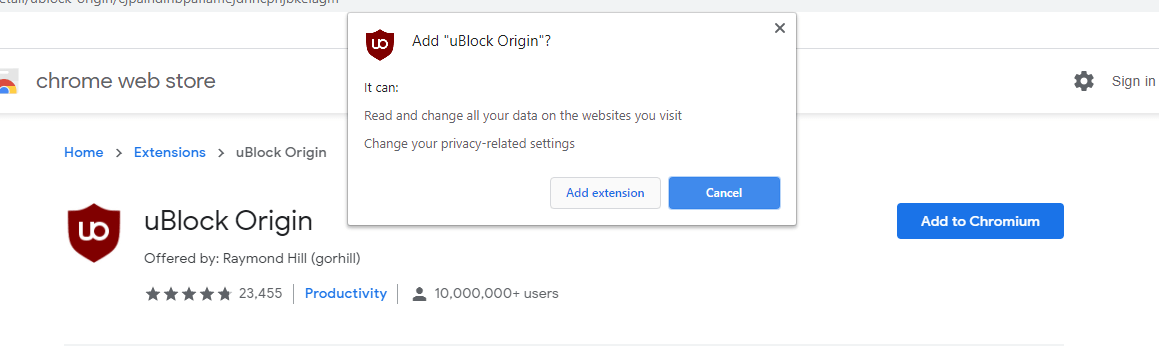 I'll be installing the wide-spectrum tracker blocker, uBlock Origin in this step.