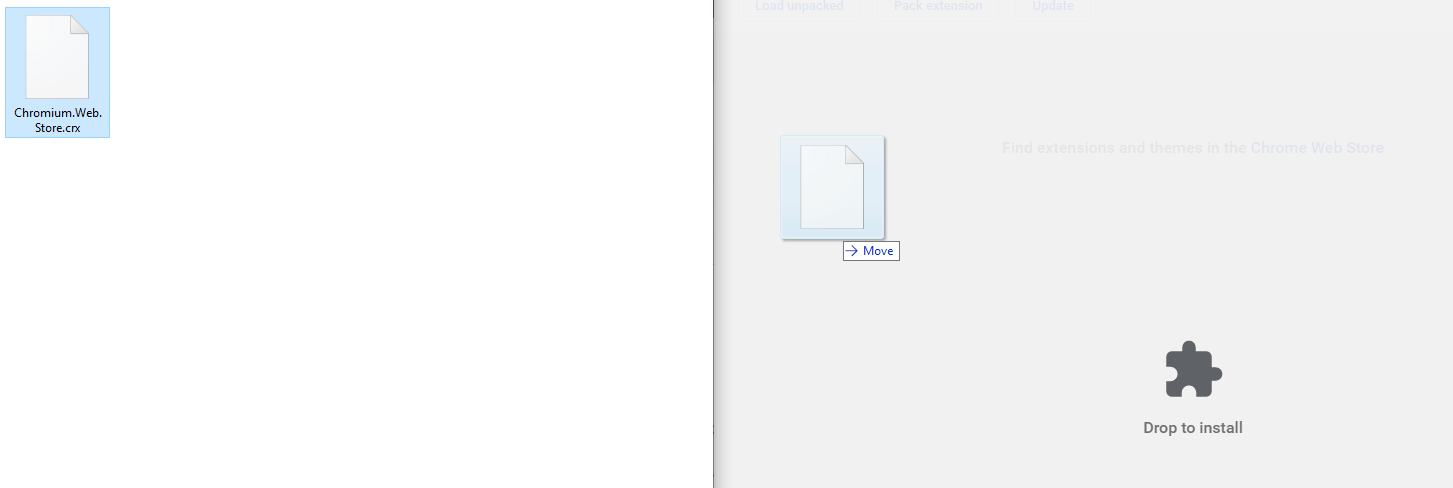 - Drag Chromium.Web.Store.crx to your Chromium browser, like so:
