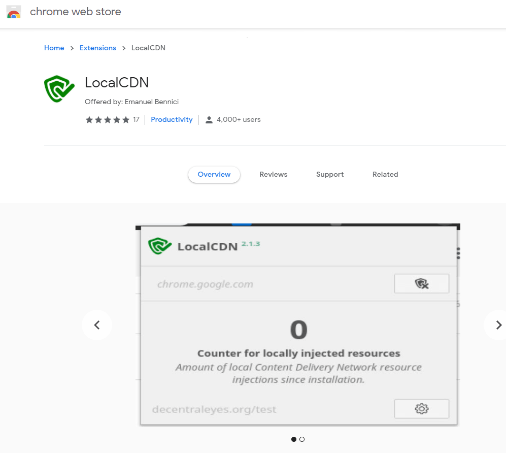 - Go to the extension's Chrome Web Store page. Again, I'm on the page for LocalCDN: