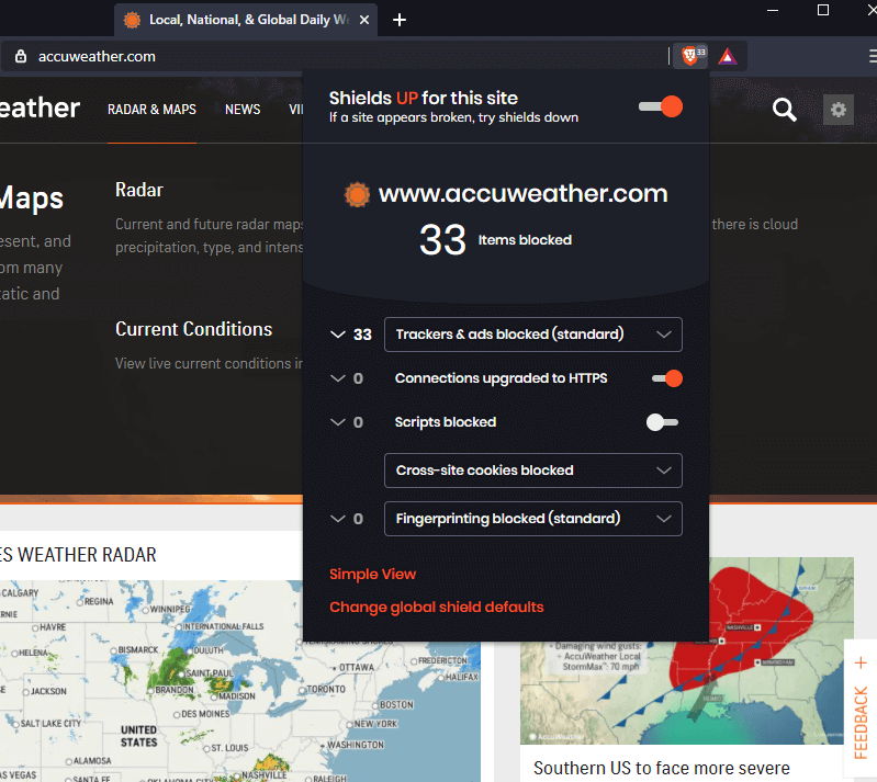 Overall, Brave's "shields" provides pretty decent tracker protection all on its own. It's probably the best native solution (as opposed to using an extension like uBlock Origin) I have seen in a privacy browser.
