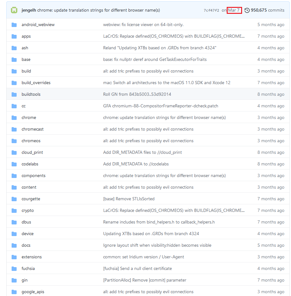 The lack of updates to Iridium are evidenced on the Iridium browser's website: