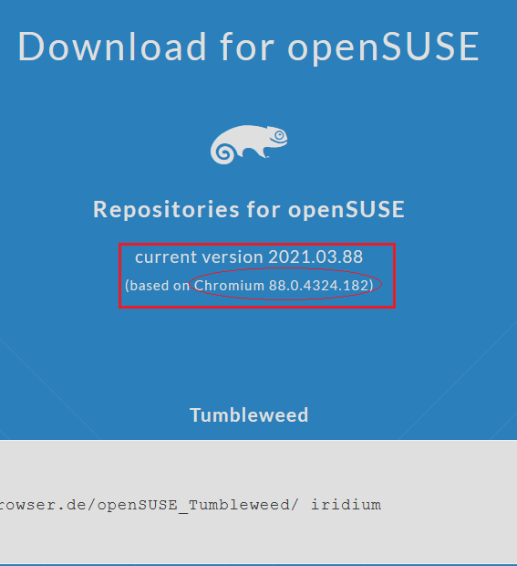 As shown on the official Iridium browser website, the most update to date version of Iridium is based on Chromium ver 88.0.4324.182 and apparently only available for openSUSE.