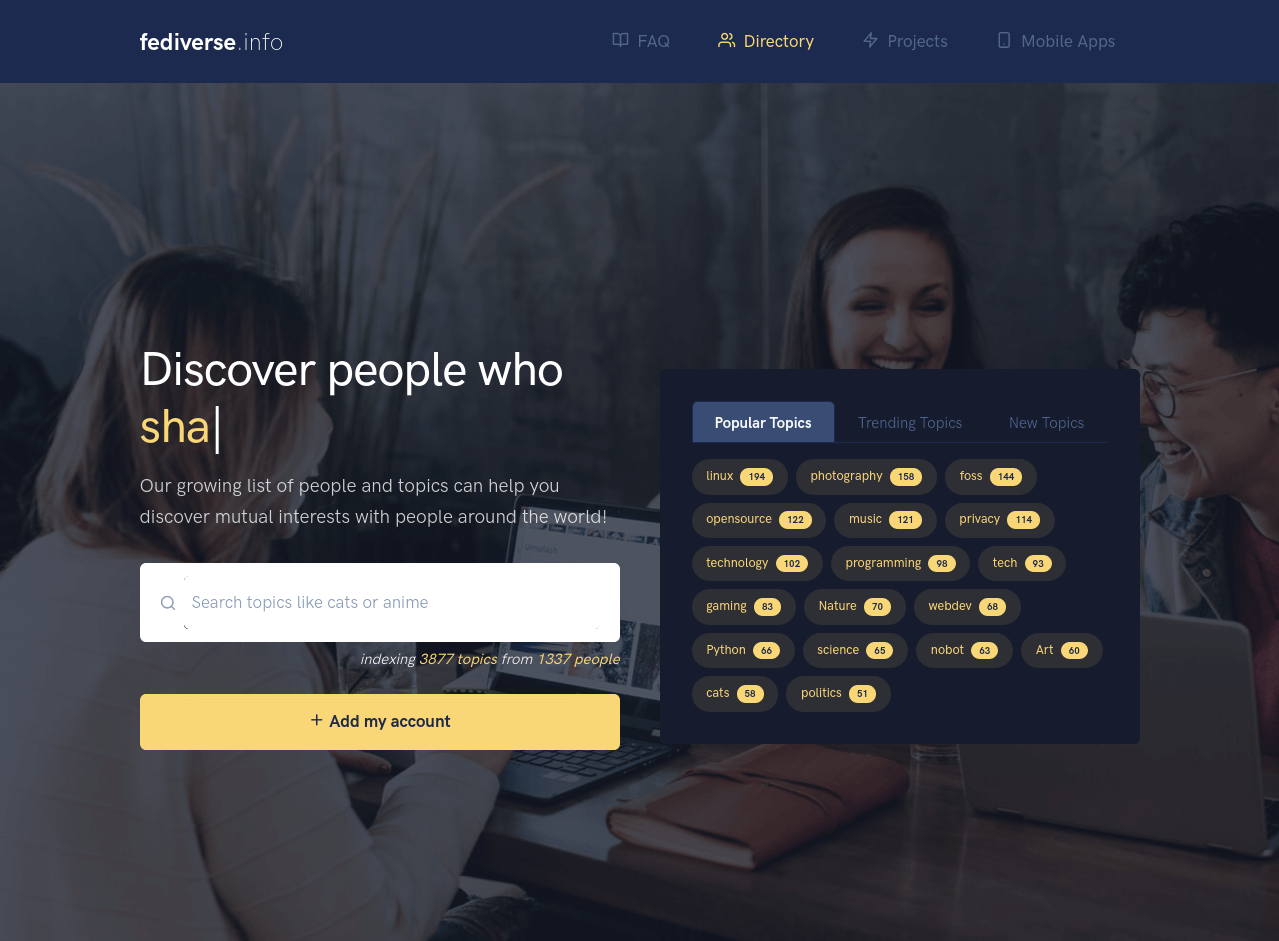 Fediverse.info makes it easy to follow accounts “looking” for new followers across the entire fediverse (not just Mastodon). Users can search a wide range of topics to find accounts aligning with their interests.